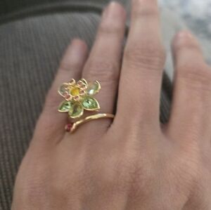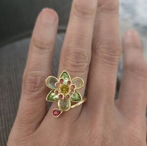18kgp Elegant floral ring featuring a stunning gold and red design. Perfect for adding a touch of sophistication to any outfit.