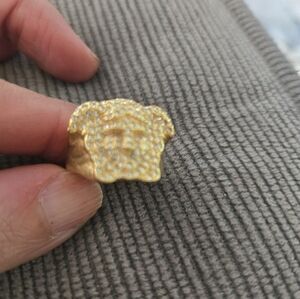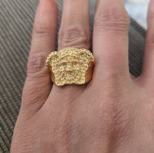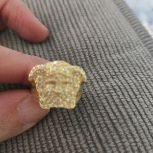 18kgp Versace Stunning gold lion head ring adorned with sparkling crystals. Perfect for adding a touch of luxury to any outfit. Can't confirm authenticity as this was gift. Adjustable but smallest size 6