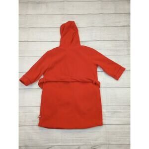 VGUC Nick & Nora fleece hooded. bathrobe. Red with sock monkey and gingerbread house appliques. Front pockets. Ties at waist. Holiday print lining. Light wash wear