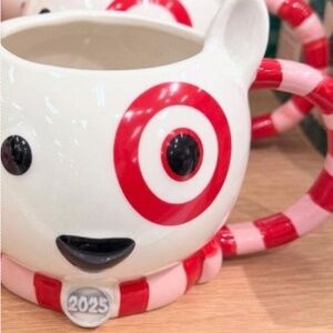 Add warmth and cheer to your home while showing your love for your favorite store with this Christmas Figural Bullseye Mug with Scarf from Wondershop™. Made from earthenware, this mug is designed as Bullseye wearing a scarf with red and light pink stripes for wintry charm. Suitable for hot and cold beverages, this 18-ounce mug is also dishwasher and microwave safe for easy cleaning and reheating. Plus, it has a striped curved side handle for comfy holding.