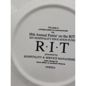 Back says "This plate is a limited edition to commemorate the 18th Annual Puttin' on the RITz RIT Hospitality Education Fund. Presented By Hospitality & Service Management