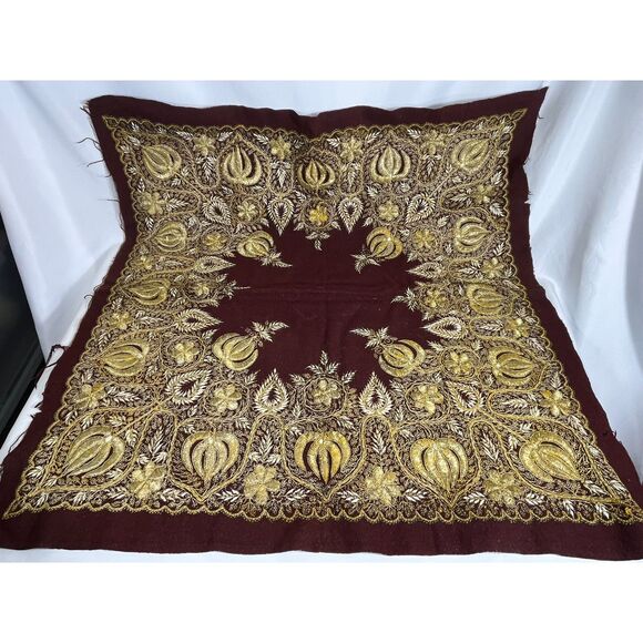 Unfinished edges. Measures 32" square. Letter found with this item states it was sent as a wedding gift from a British officer who was stationed at Bangalore, near Madras.