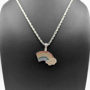New Icy 14K White Gold Finish Rainbow Cloud Pendant & 14K White Gold Finish 18" x 3mm Rope Chain Chain over Stainless Steel for Men & Woman.