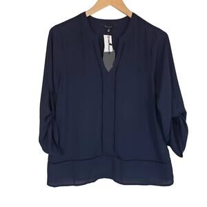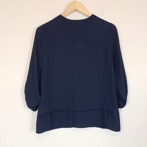 19 Cooper Stitch Fix Vista Lattice Detail Blouse Navy Office Career Womens Small