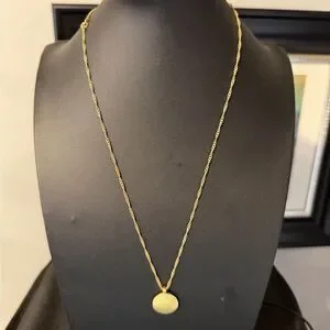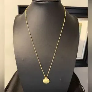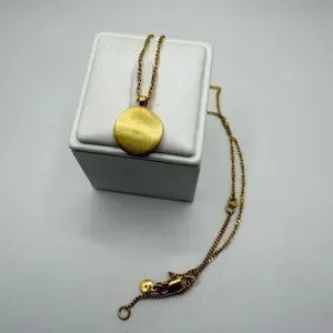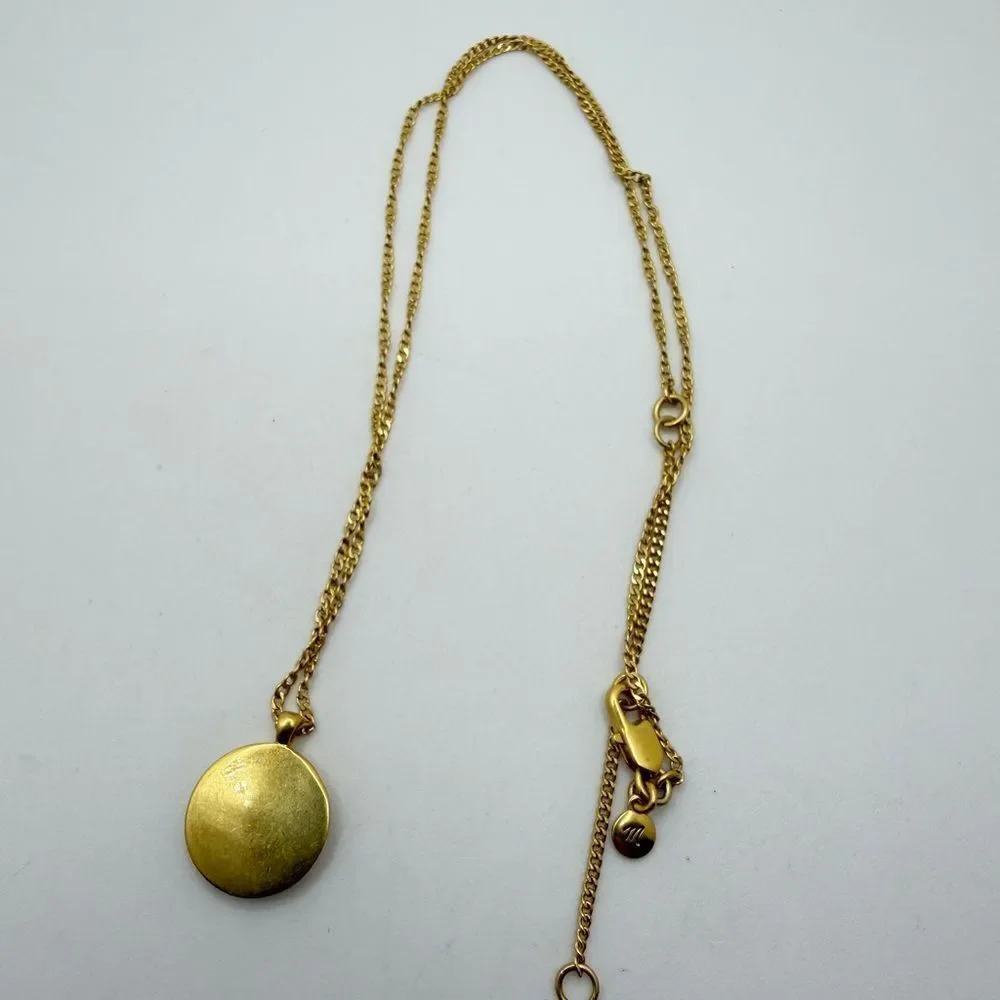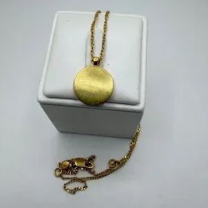 There is a 17mm (diameter) modern gold tone pendant and a really well made link chain.