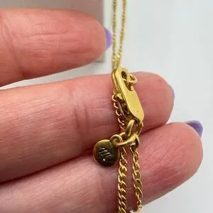 Stamped M (for Madewell) on the tag right near the lobster clasp. The shortest link you can make the necklace is 19" but you can easily extend it up to 3 more inches.