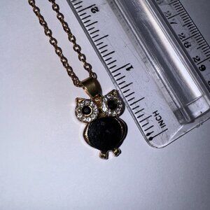 This is a 19" Rose Gold Plated Onyx and Cz. Owl Necklace. This necklace is 19" long with a teardrop lobster claw clasp closure.