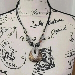 This elegant necklace set features a stunning combination of gold and black tones, perfect for any occasion. Enhance your style with these beautifully crafted pieces. excellent condition
