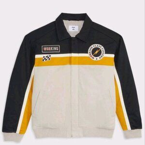$190 MODE OF ONE Men's Twill Racer Jacket, Exclusively Dark Ecru Size XXL