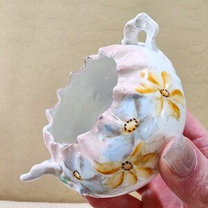 c 1900 Antique Hand Painted Daisy Flower Pinch Top Handled Bowl