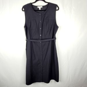 1901 Belted Twill Shirt Dress Size 16. Sleeveless, versatile, black dress with pockets has a bit of stretch for day to evening comfort and style.