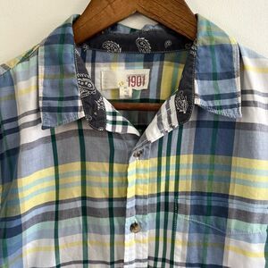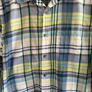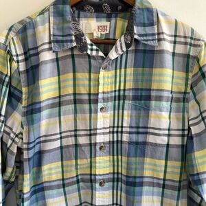 1901 Blue Green Yellow Plaid Button Down Collared Shirt Nordstroms Men's Medium