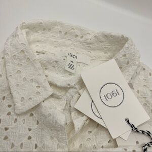A dense, textured weave balances the airy eyelet patterning on this all-cotton button-up blouse that's ready for work or play.