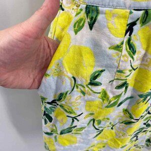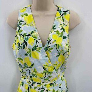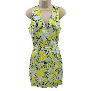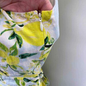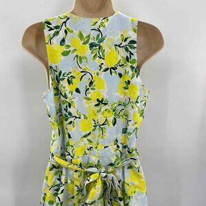 1901 Dress Womens Small White Yellow Linen Rayon Lemon Print Lined Belt Pockets