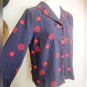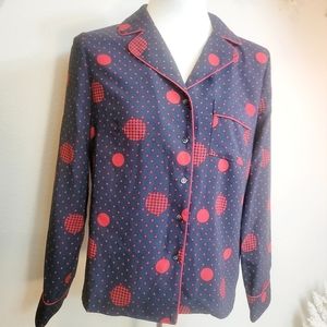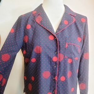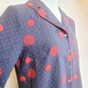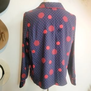 1901 GEOMETRIC PATTERN NOTCHED COLLAR BUTTON-UP LONG SLEEVE WOMEN'S SHIRT SMALL