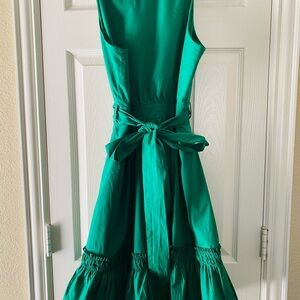 1901 GREEN PLEATED COLLAR SHIRTDRESS WITH FRONT BUTTONS AND WAIST TIE, Size 6