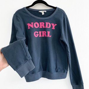 1901 Nordy Nordstrom Girl Graphic Size Small Pullover Crewneck Sweatshirt Navy Pink Long Sleeve.