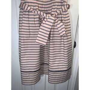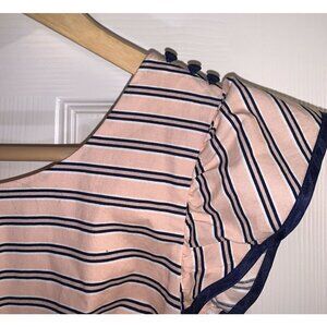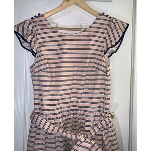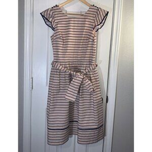 1901 Pink & Navy Blue Striped Belted Cap Ruffled Sleeve Business Casual Dress 8