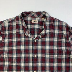 1901 Shirt Mens L Large Gray Crimson Cotton Check Button Up Long Sleeve Pocket