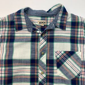 1901 Shirt Mens L Large Plaid Short Sleeve Collared Cotton Pocket Button Up