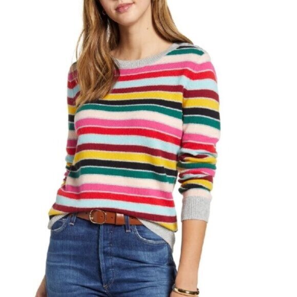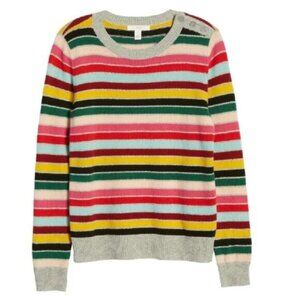 In a stack of colors and featuring a trio of buttons topping one shoulder, this crewneck sweater knit from a cozy cotton and wool blend is an easy favorite.