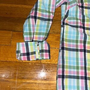 1901 button down is made of light weight 100% cotton material perfect for early fall. Multi-colored plaid design will go great with a pair of jeans for a night out on the town.