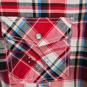 1901 Women Pearl Snap Western Shirt Large Plaid Pocket Rodeo Cowgirl Red Sequins