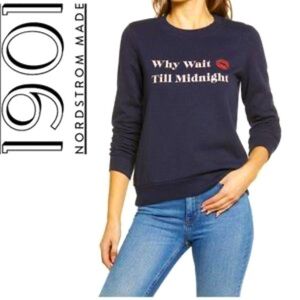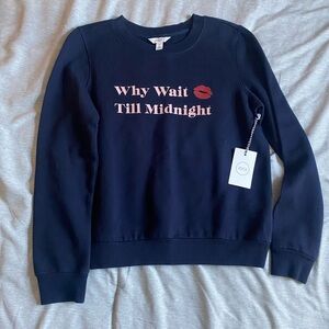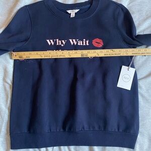 1901 Women's "Why Wait" Fleece New Years Eve Sweatshirt Navy Size Medium NWT