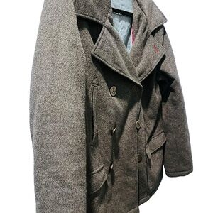 1901 Wool Men's Pea Coat Dark Grey Long Sleeve Jacket Size Large Pockets Buttons