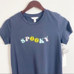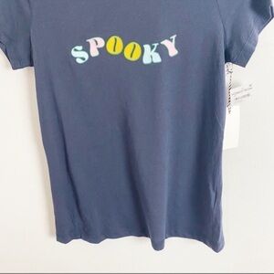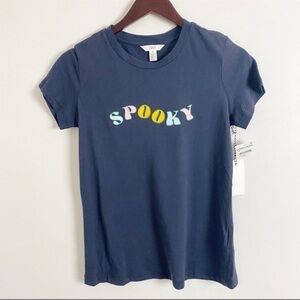 Brand new. Navy Blue. Multi color “Spooky” graphic on front. Short sleeves. Crew neck. Halloween t-shirt. Basic. Fall fashion.