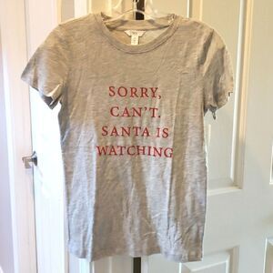 1901 By Nordstrom Christmas Holiday Graphic Print "Sorry Can't, Santa is watching" T-Shirt. New without tags.