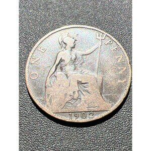 A vintage 1902 Edward VII One Penny coin from Great Britain. This collectible item showcases historical design and craftsmanship, ideal for enthusiasts of rare currency.