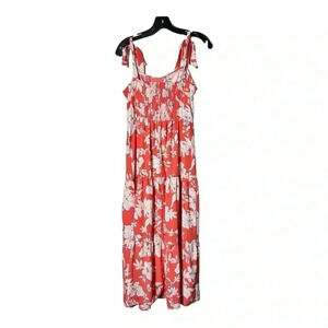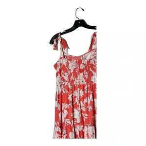 DETAILS: SLEEVELESS; TIED STRAPS; SMOCKING IN BACK; SQUARE NECKLINE; TIERED DRESS; MIDI LENGTH; FLORAL PATTERN; UNLINED; LIGHTWEIGHT