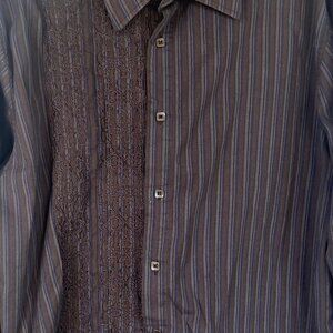 191 Unlimited Button Down Shirt Mens XL Brown Embroidered Details