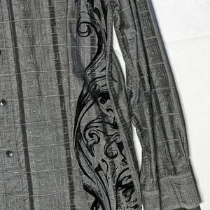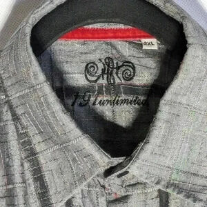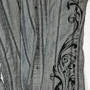 191 Unlimited Graphic striped square Button Down shirt XXL Gray Black