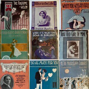 This listing includes 9 original pieces of sheet music from the 1910s. Ideal for collectors, decorators, or musicians.
