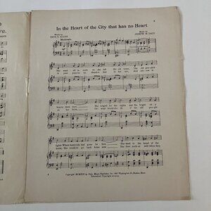 1910s Vintage Sheet Music WW1 In the Heart of the City That Has No Heart