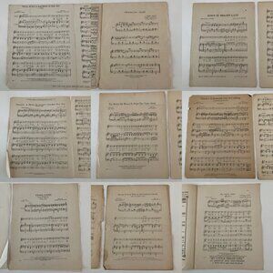 This is a beautiful lot of 9 vintage sheet music pieces from the early 20th century, featuring richly illustrated covers and a mix of romantic, sentimental, and comic themes. Great for collectors, display, or vintage décor.