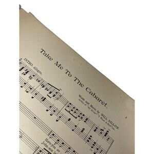 1912 Take Me To The Cabaret Large Sheet Music Will Dillon