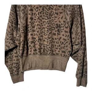 1914. OCEAN DRIVE LONG SLEEVE CROPPED SWEATER BROWN/BLACK LEOPARD PRINT SIZE MED