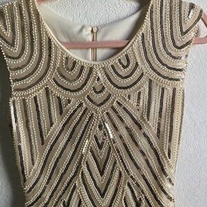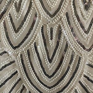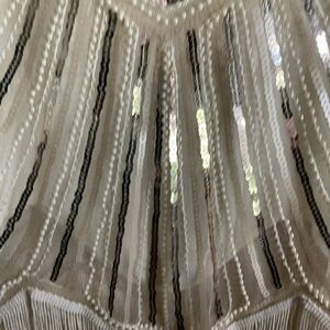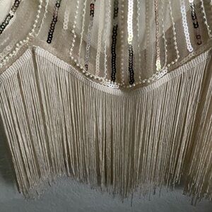 1920 Gatsby Retro. Style Beaded Sequin Fringe Cream Flapper Party Dress Size XS
