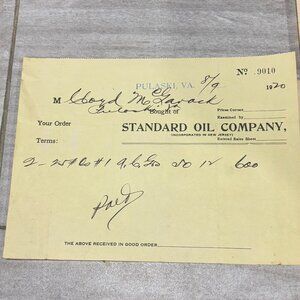 These original 1920 Standard Oil Company receipts from VA offer a glimpse into historical transactions and early 20th-century business practices.