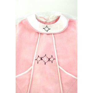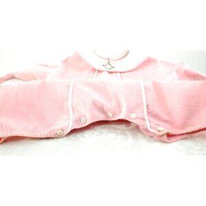 1920s 30s child's romper pink linen bubble with embroiderery button crotch