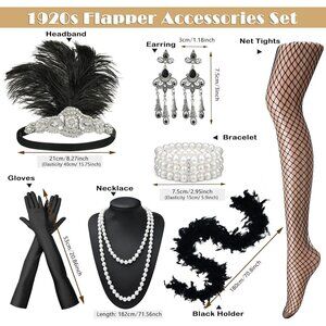 Step back into the roaring 20s with this stunning flapper accessories set! Perfect for costume parties, themed events, or just adding vintage glam to your everyday look. This set is a true showstopper.