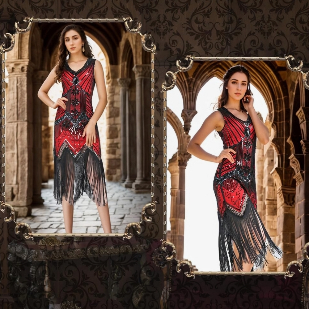 NIB... lovely lined beaded fringed dress reminisces the Great Gatsby Era..1920s flapper dress with all the accessories included. Size XL