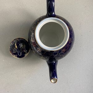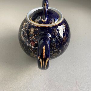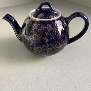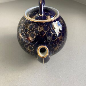 1920's Hall China Cobalt Blue with Gold French Flowers and Trim Tea Pot, 6 Cups