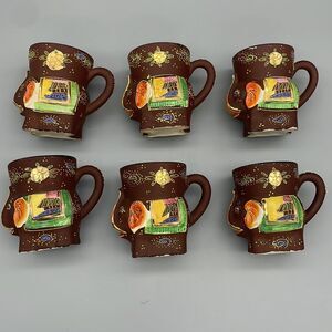 1920s Japanese Satsuma 6 Elephant Tea Cups Hand Painted Porcelain Figurine
