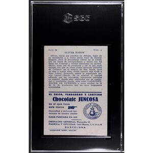 For this listing, I am presenting a Rare 1920's Chocolate Oliver Hardy oversized card. This is a 1920's Chocolate Junosa Film Stars #4 Fancy Frame, Serie M. When I say rare or Pop 1, I mean this is the only one graded by SGC, with zero graded by PSA that I can find! The card is graded an SGC 5 and is gorgeous! This is a one of a kind item for Laurel and Hardy and Vintage Hollywood collectors! Please see my other Vintage Hollywood Listings!