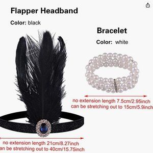 Headband, Pearl Necklace, Bracelet, Earring, Glove ,Cigarette Holder and stocking