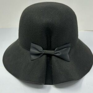 1920s Vintage Style Long Brim Wool Felt Cloche Hat Black 100% Polyester Size S